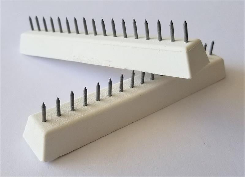 designed for supporting odd shapes. The sharp pencil shape hi-temp metal tips leave the cleanest smallest mark possible in glazed items firing after firing.
