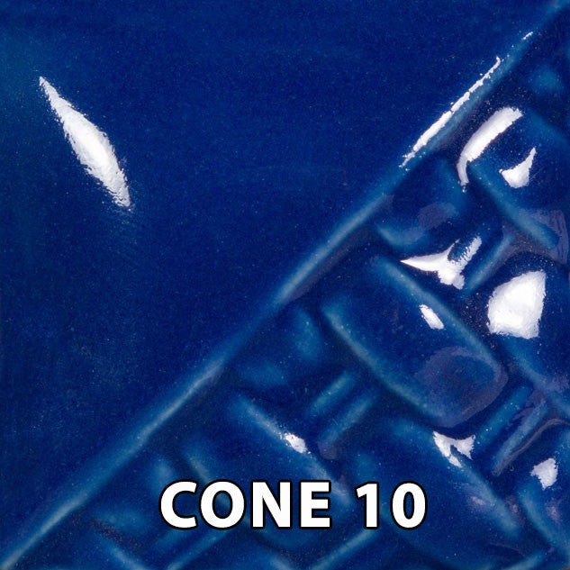 Cone 6: Blue Gloss is a highly-pigmented royal blue gloss glaze. The stable qualities of this glaze make it ideal for design work and full opaque coverage at mid-range temperatures.