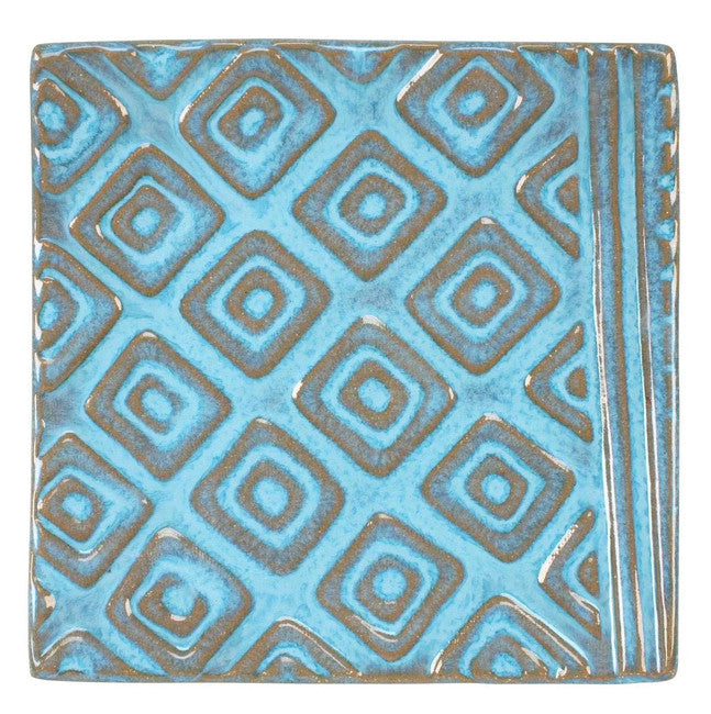 Although AMACO® Opalescent Glazes may be used on any AMACO® clay, they develop their greatest opalescence and most interesting textures when applied over red burning AMACO® Sedona Red Clay No. 67. The AMACO® Opalescent Glazes have a high gloss finish when fired. Best results are achieved with three or four applications of glaze. On textured ware, the glaze flows thin on relief and thick in incised areas, giving an added dimension on the surface.