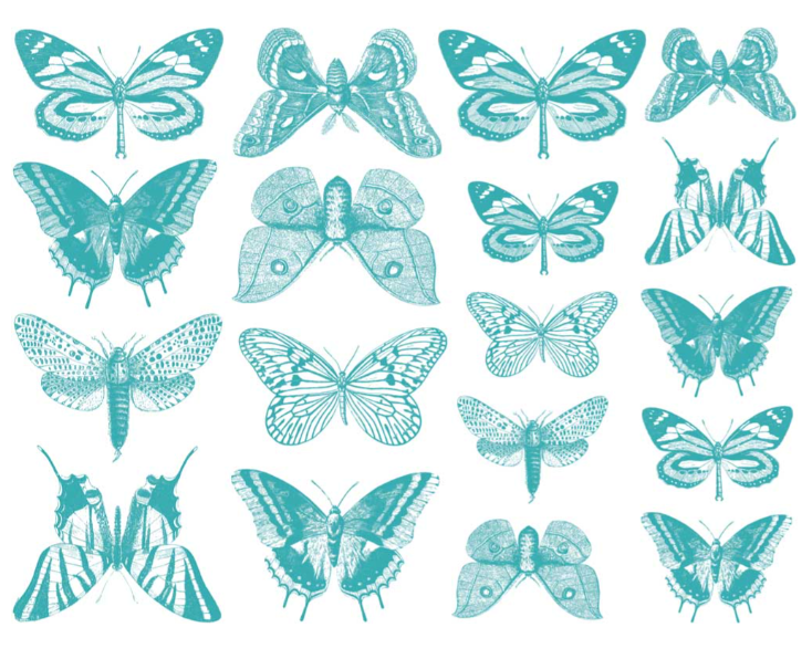 CONE 6 small butterfly decals. Available in black, blue, red, and teal.