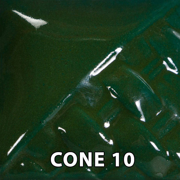 Cone 6: Dark Green Gloss is a highly-pigmented emerald green gloss glaze. The stable qualities of this glaze make it ideal for design work and full opaque coverage at mid-range temperatures.
