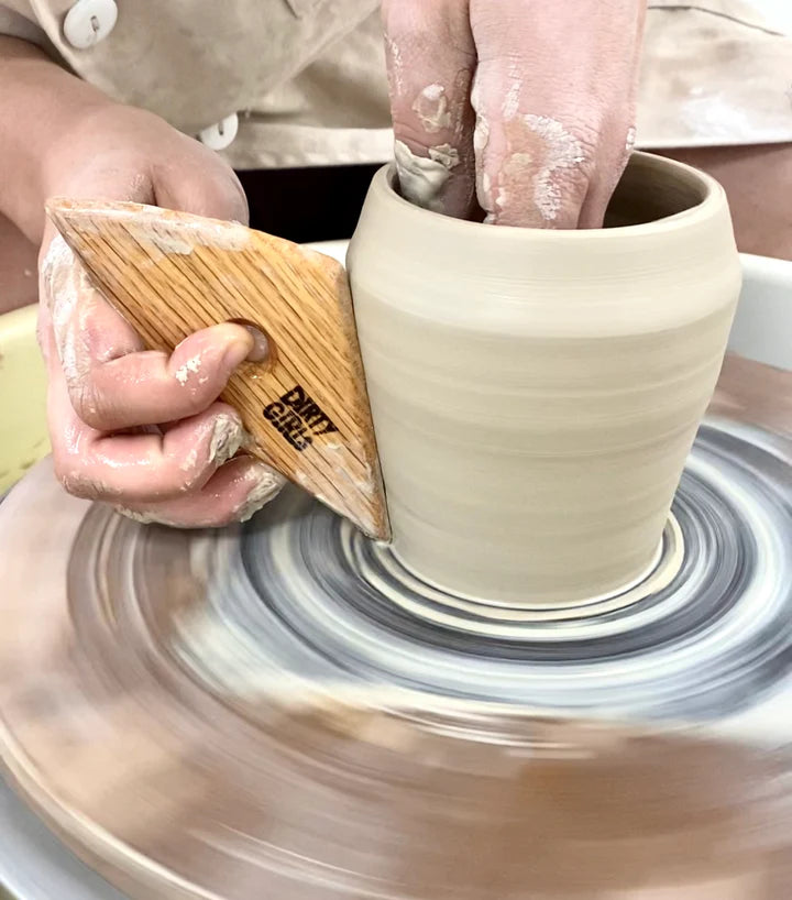 A wooden rib tool designed for clay work, perfect for smoothing, shaping, and detailing your pottery projects. Comfortable grip while offering precision control for both hand-building and wheel-thrown pieces.