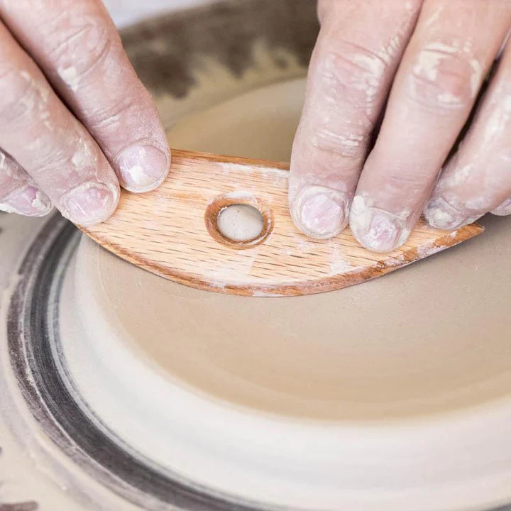 Use the rounded side to profile the foot of your pot or create a galley on a rim. Use the slope side to shape the profile of your entire pot. Top and Bottom edges are beveled for use as shaping ribs too.
