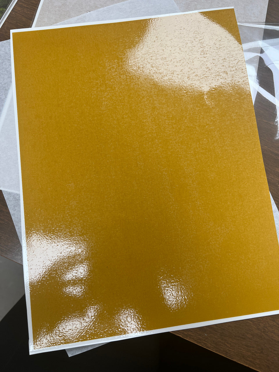 A full sheet of gold that can be used to make designs in an overglaze firing.