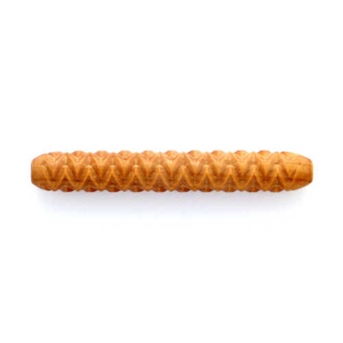 HR HandRollers are deeply carved, have unique designs, and release well from clay and any soft medium. All MKM rollers are made from wood that is precision carved to make deep beautiful impressions. The rollers are also beveled carved, allowing them to release easily from clay. You simply roll the HR roller with your hand across the clay or up the wall of a pot to create a beautiful pattern. Because of their smaller size and lightweight HR rollers are perfect for rolling vertically up the walls of a thrown pot. HR rollers also work great on slabs. The ends of the rollers are rounded to avoid a line along each side of the pattern. This allows patterns to blend. For long rolls, the MKM Roller Board can help create long smooth rolls and avoid knuckle bumps. MKM rollers are finished with tung oil to ensure durability over many years of use. MKM tools are easily cleaned with water and a soft toothbrush.