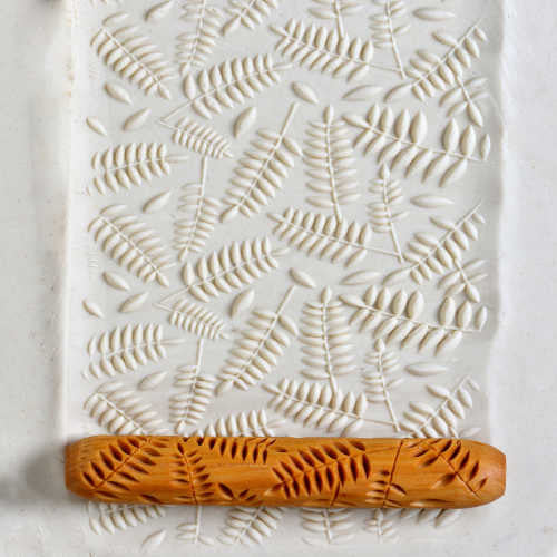 HR HandRollers are deeply carved, have unique designs, and release well from clay and any soft medium. All MKM rollers are made from wood that is precision carved to make deep beautiful impressions. The rollers are also beveled carved, allowing them to release easily from clay. You simply roll the HR roller with your hand across the clay or up the wall of a pot to create a beautiful pattern. Because of their smaller size and lightweight HR rollers are perfect for rolling vertically up the walls of a thrown pot. HR rollers also work great on slabs. The ends of the rollers are rounded to avoid a line along each side of the pattern. This allows patterns to blend. For long rolls, the MKM Roller Board can help create long smooth rolls and avoid knuckle bumps. MKM rollers are finished with tung oil to ensure durability over many years of use. MKM tools are easily cleaned with water and a soft toothbrush.