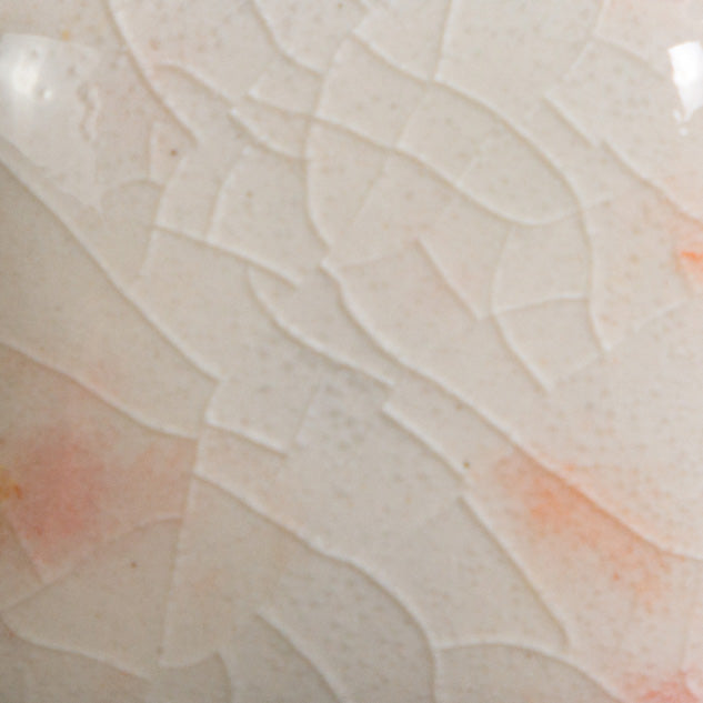 Cone 6 oxidation (second image): Base glaze fades – crystals fade and melt. Enhanced mobility. Surface issues may occur.