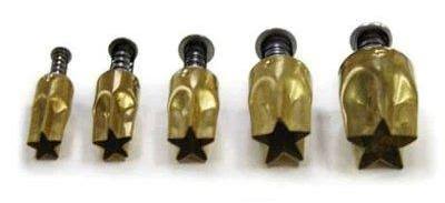These cutters work just like a cookiecutter with a pusher-outer! This set includes stars in the following diameters: 3/4, 5/8, 1/2, 7/16, and 3/8.