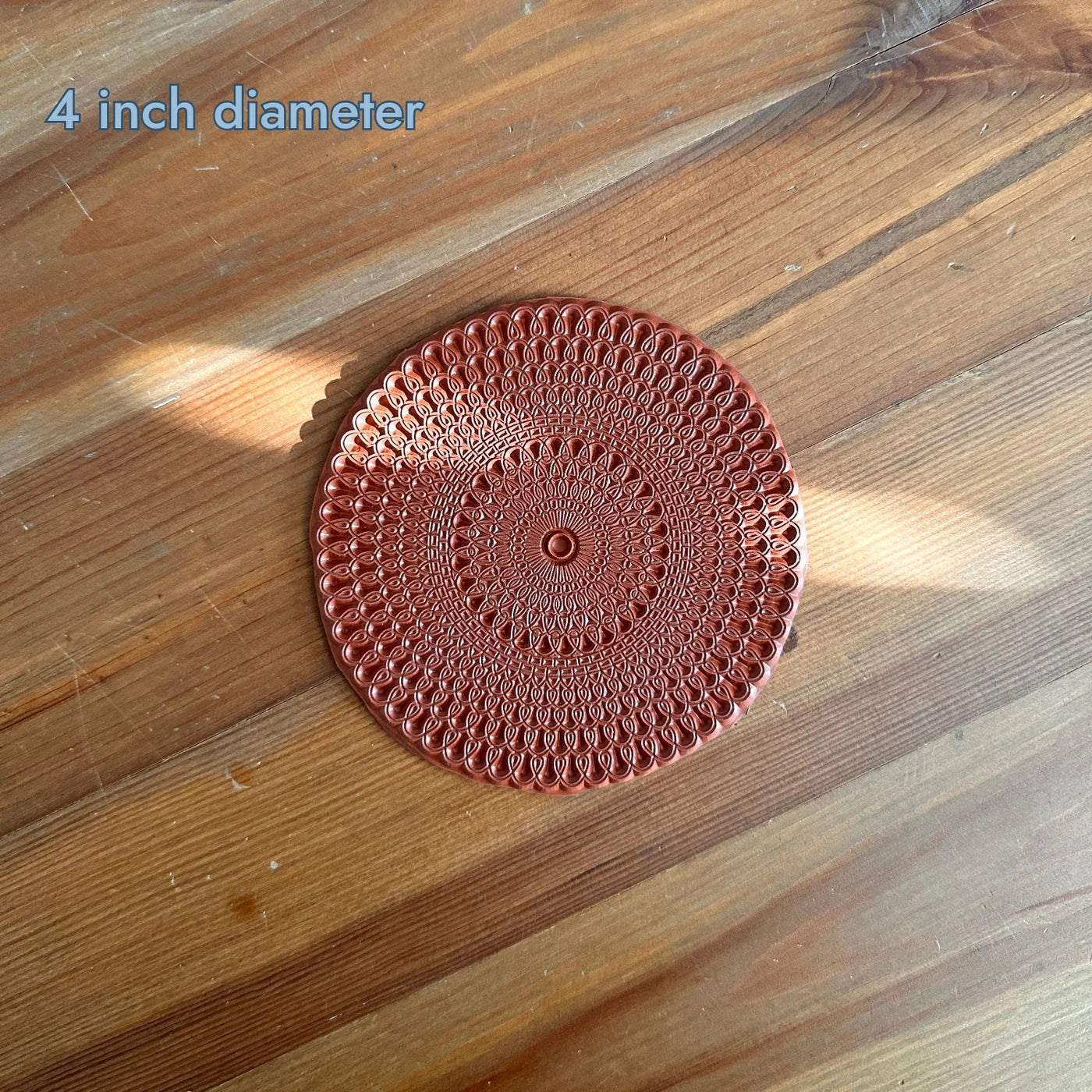 What really makes these texture mats stand out is that the mandala pattern itself is NOT recessed, or debossed, into the clay. The outline of the mandala is the part that is recessed/debossed. Hard to explain in words, super easy in pictures. See product photos to the left for details. It's a great effect that has been especially attention-grabbing for our early testers of these mandala texture mats.
