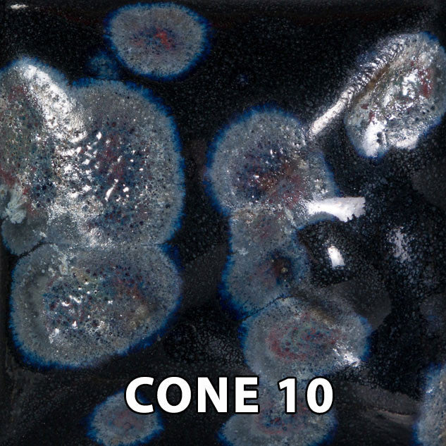 Cone 10: No change. TIP: SW-508 Black Gloss is the base glaze. For a lighter crystal effect, you may try applying two coats of SW-508 Black Gloss with a third coat of SW-181 Night Moth.