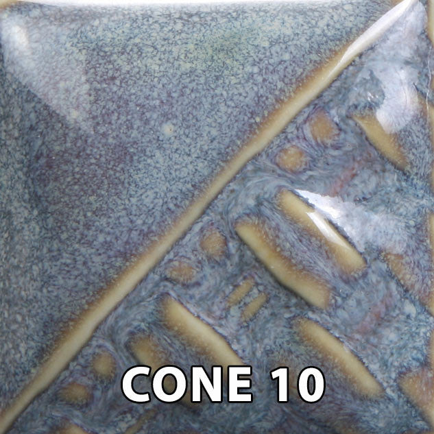 Cone 6: Norse Blue is a semi-opaque blue gloss glaze that displays shades of light blue and green. The variation of glaze depends on application. The thicker the application, the more homogenous the color will be. The glaze will break translucent where thinner and pool darker around surface textures. Cone 10: Color darkens.