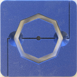 The 4" extruder dies are made of 1/2" HDPE (High Density polyethylene). Which is extremely wear-resistant and completely non-contaminating. The top edge of the die cavity is beveled to compact the clay as it passes through, giving a crisp, more solid extrusion. In the hollow dies, there is a bevel on both the interior and exterior portions under each side of the bracket (which holds the center of the hollow dies) that helps the extrusion to "heal" after is has been cut apart by the bracket. This bracket fits into a slot machined into the top of the hollow die and is held in place by the barrel of the extruder. If a hollow die is mounted in place, the center part of the die is in exactly the right place and the wall thickness will automatically be even all the way around. In general, the walls of extrusions 3-1/2 inches OD or less are 1/4 inch thick, while larger pieces have 5/16 inch walls. We have a selection of stock 4” dies available & custom dies are quickly made and inexpensive.