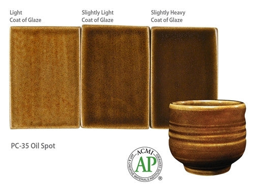 Reminiscent of T'ang Dynasty glazes, Oil spot is a glossy medium brown translucent glaze that is excellent for textured surfaces.