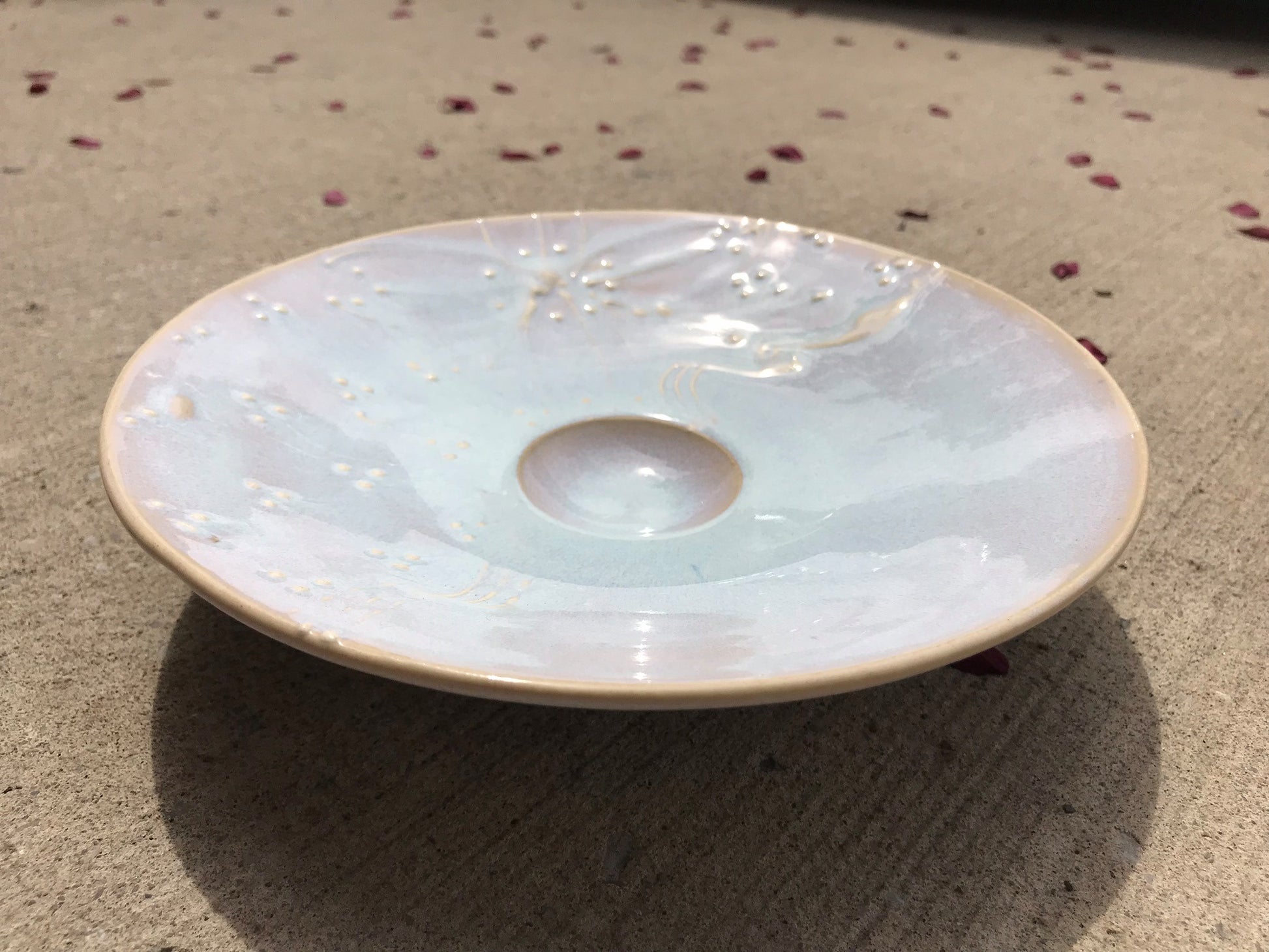 - Clear Satin Glaze (cone 4/6) – Also lead free, A/P non-toxic, dinnerware safe and suitable for use over underglaze decoration. Satin clear glazes are not as translucent as clear gloss glazes and will tend to mute the appearance of underglaze decoration somewhat.