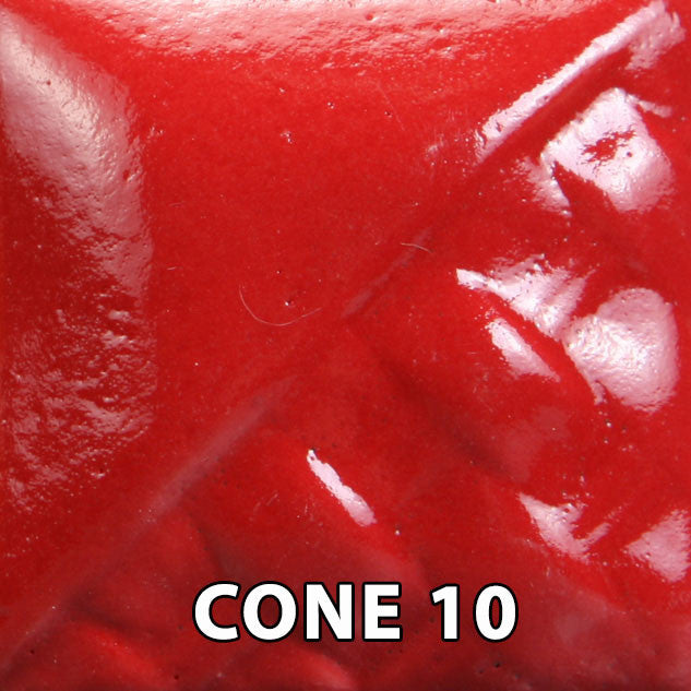 Cone 6: Red Gloss is a highly-pigmented scarlet red gloss glaze. The stable qualities of this glaze make it ideal for design work and full opaque coverage at mid-range temperatures.