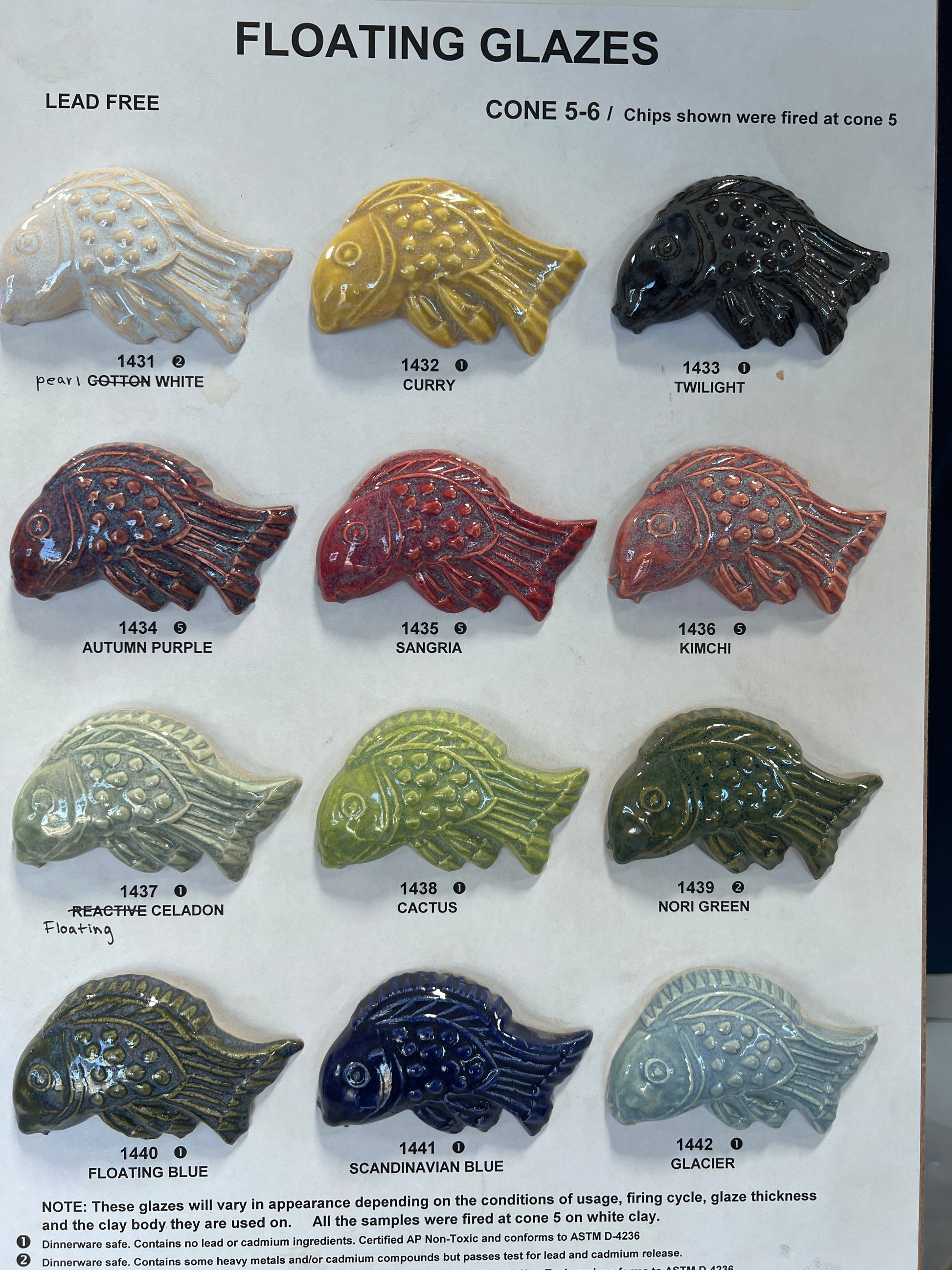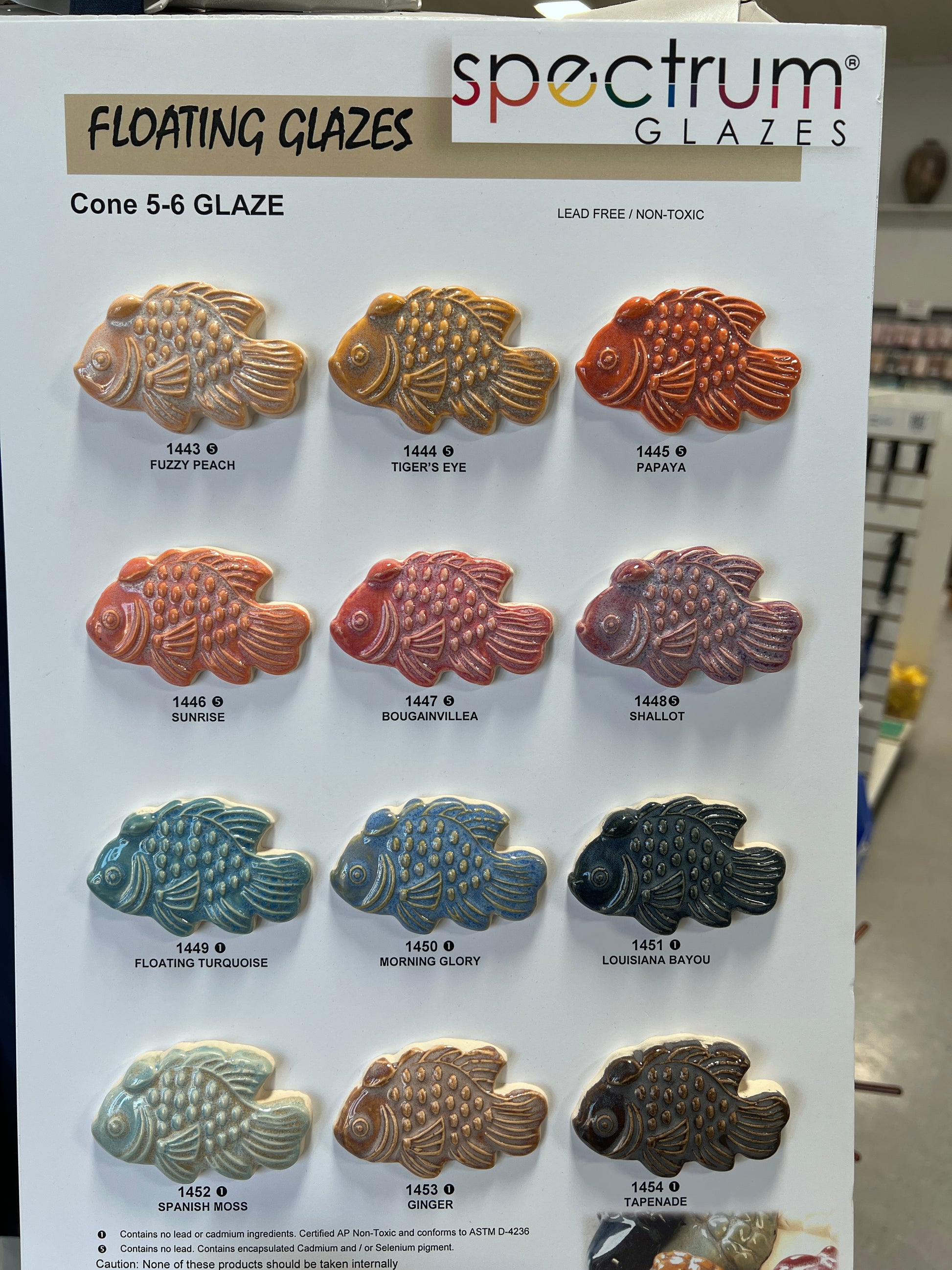 12 jars of Spectrum floating glazes. 2 sets from which to choose!