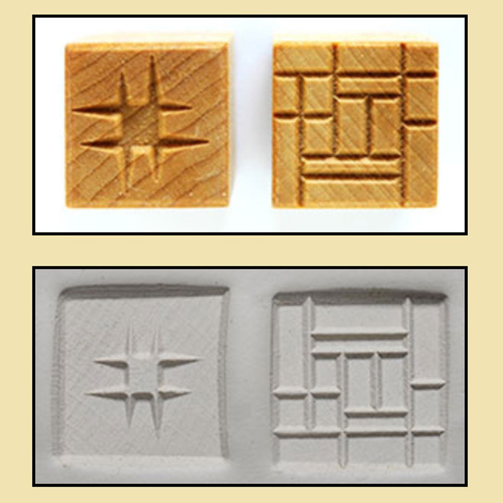 Ssm Stamps are 3 x 3 cm (1.2 x 1.2 inches) square. MKM stamps are beautifully carved, have unique designs, and release well from clay or any soft medium. MKM stamps are made from wood that is precision carved to make deep beautiful impressions. The stamps are also bevel carved, allowing them to release easily from clay. The Ssm stamps have a designs on each end, stamps above a 100 have an embossed and debossed design. The stamps are finished with tung oil to ensure durability over many years of use. These stamps are easily cleaned with water and a soft toothbrush.