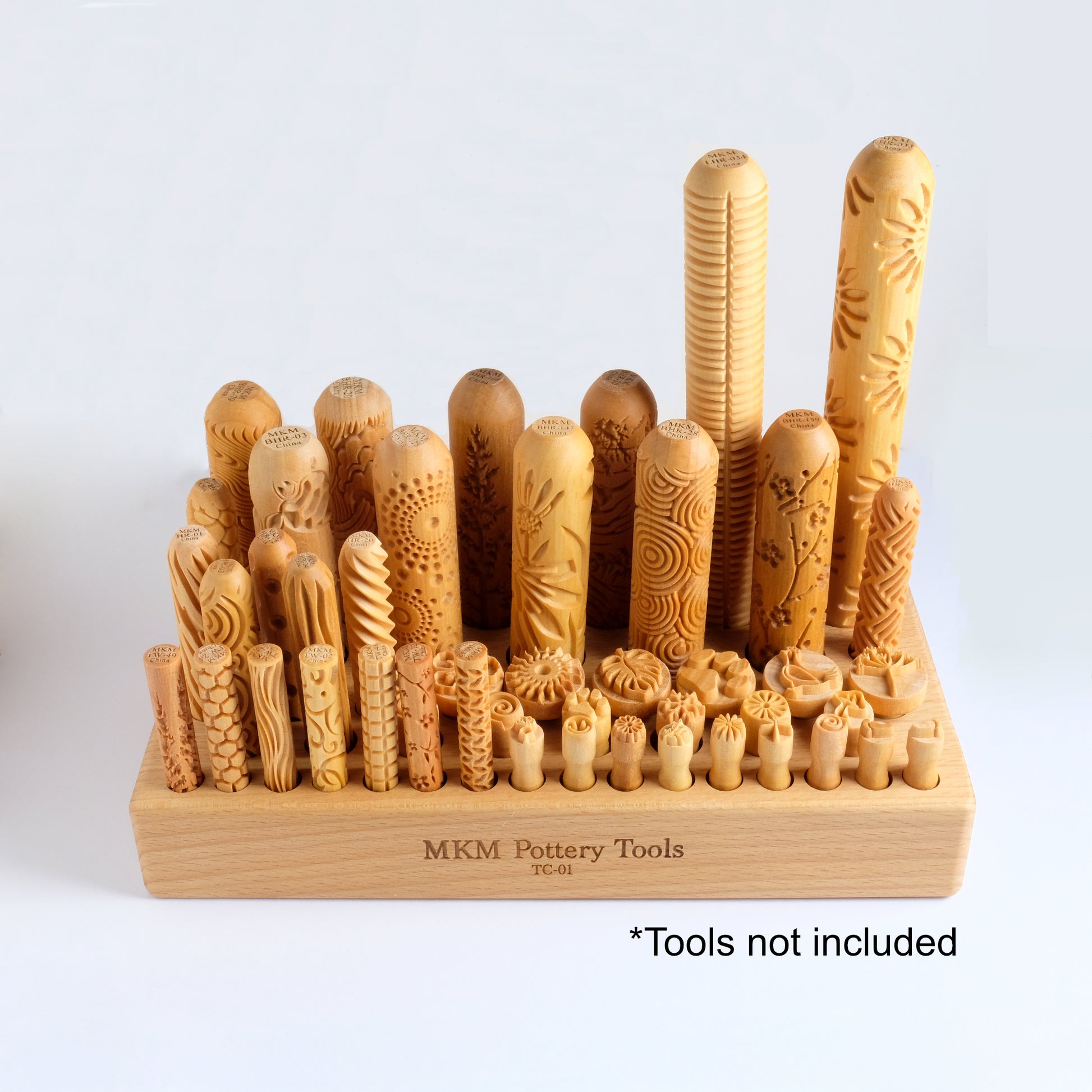 The MKM Tool Holder offers an organized display for easy access to your favorite MKM tools. With 46 spots of varying sizes, the Tool Holder can hold a mix of LHR, BHR, HR, and TW rollers, as well as Scm, Scs, and Smr stamps.
