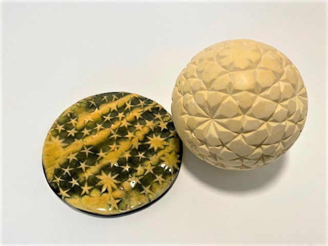 This design sparkles with the integrated facets of 5 and 6 pointed stars. Enjoy the wonderful simplicity of a familiar motif, presented here to unveil an infinite surface of geometry.