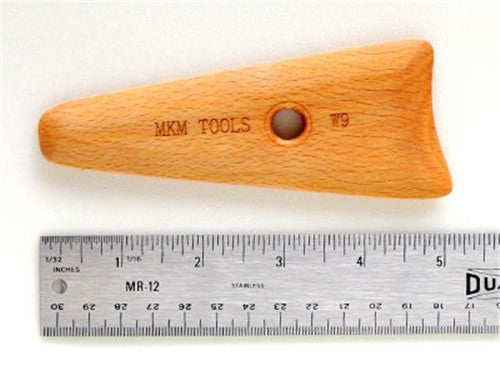 The narrow end smooths inside the foot ring, and the flat sides and curved larger end is useful on the curved exteriors of bowls, etc.